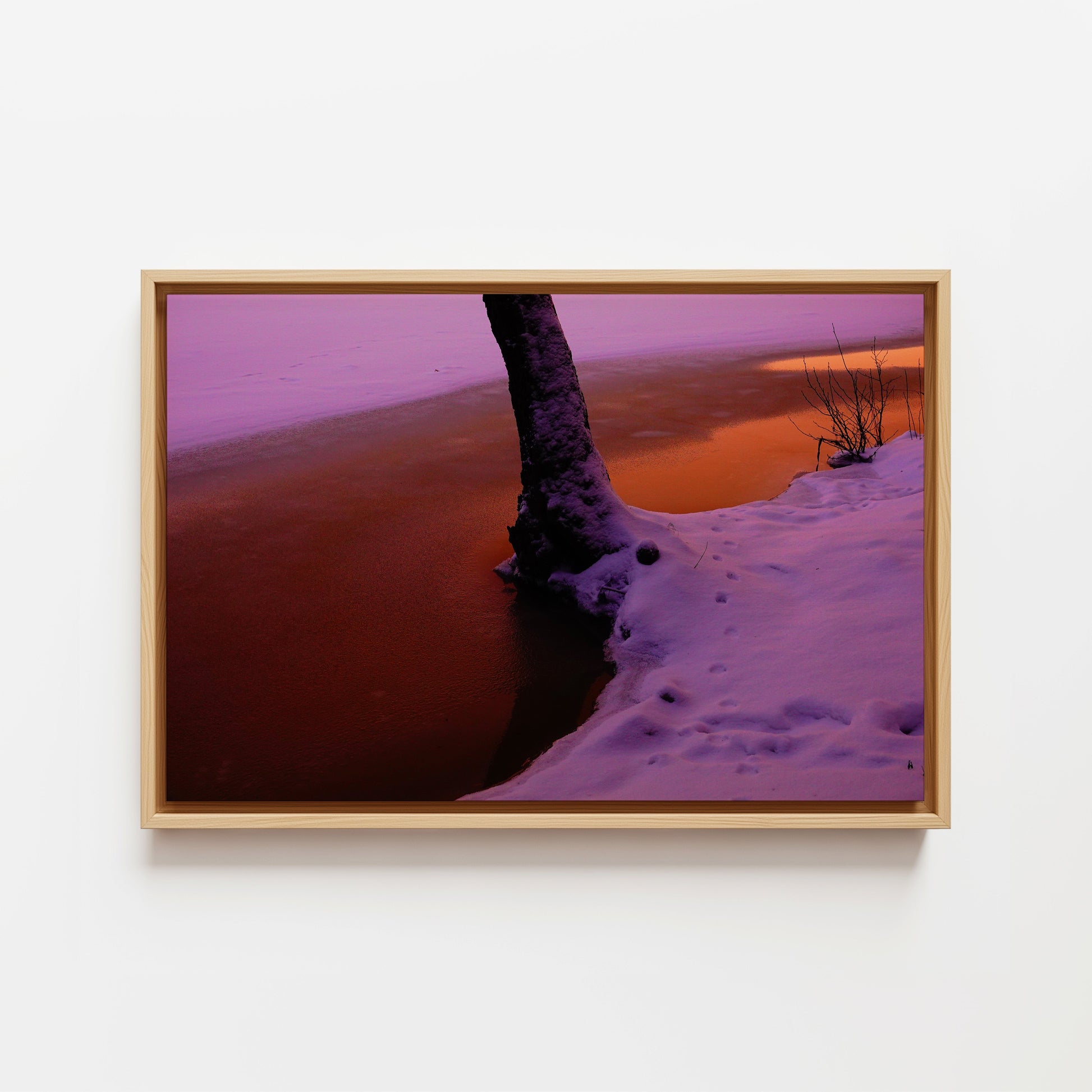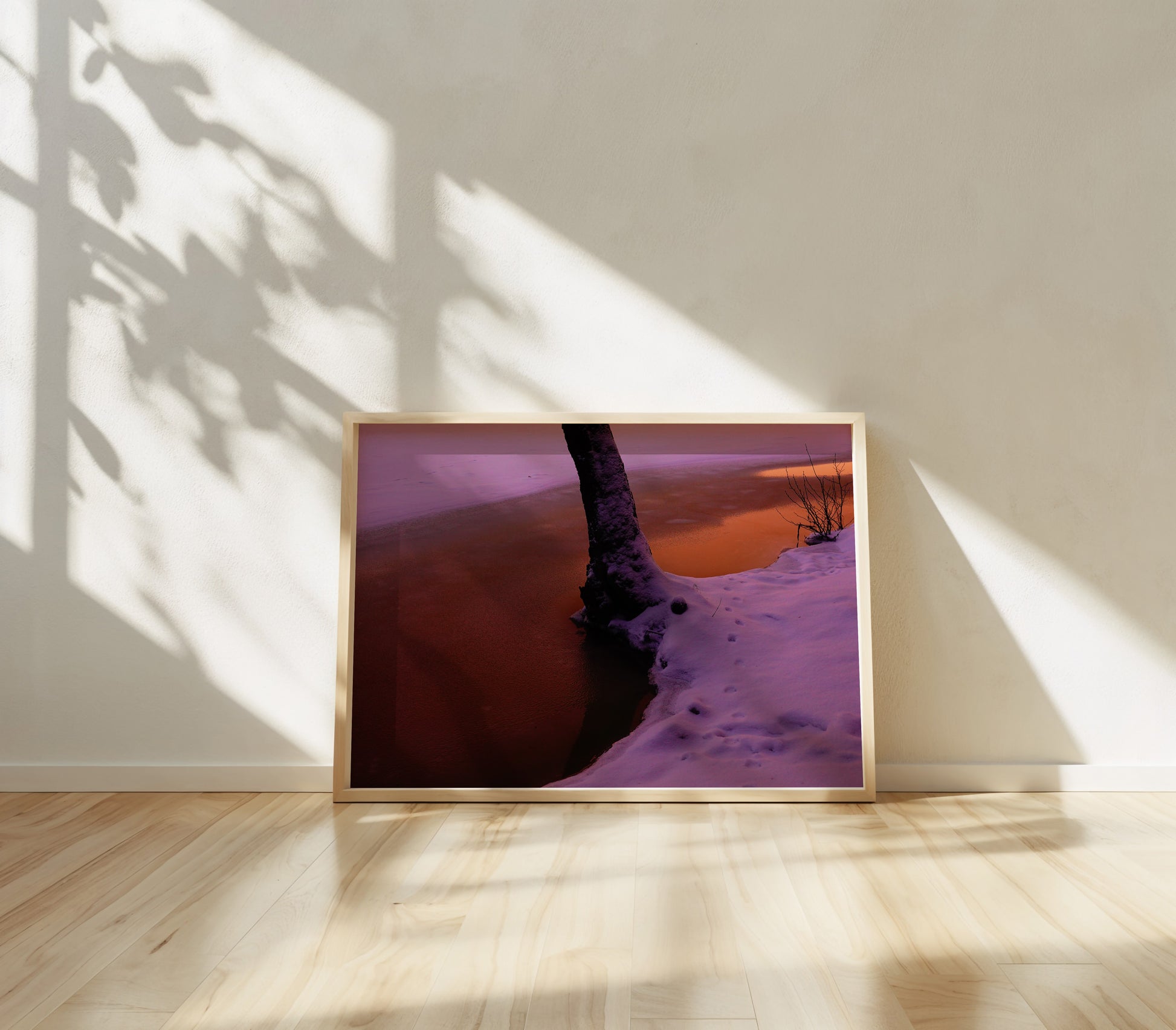 One of the most spectacular sunsets I have ever witnessed, where the light bent and scattered in ways beyond my understanding. I made many photographs that evening, yet this one remains the simplest, a tree trunk and melting snow upon the lake. Its texture felt almost tangible, as if I could taste it with my tongue. A vision both earthly and otherworldly.